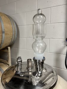 Our vessel has a gas release that allows gas to escape through the water while preventing anything else from getting into the tank. Wine Folly explains semi-porous materials, such as concrete, ceramic, terracotta, and permeable plastic, are often used to make the egg-shaped fermenters. These types of building materials offer a way to expose the wine to small levels of aeration.
